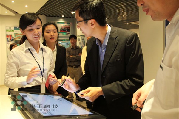 新加坡访华团先后参观了华工科技多媒体数字展厅与华工激光工艺展示中心,详细了解了华工科技的产业实力以及国外营销网络布局。在华工激光工艺展示中心,闵大勇向访华团成员介绍说:“现在华工激光已从过去的设备制造商转型为激光加工解决方案提供商,越来越多的客户与我们合作,让我们为他们的项目定制独有方案。”访华团成员对此产生了浓厚的兴趣,并详细询问了具体合作情况。