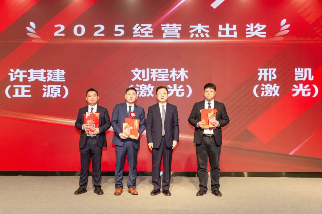会上还颁发了2025年度经营杰出奖,华工正源副总经理、数通产品线总经理许其建,华工激光智能装备事业群副总经理、三维五轴装备事业部总经理刘程林,深圳华工新能源装备有限公司总经理邢凯获此殊荣。